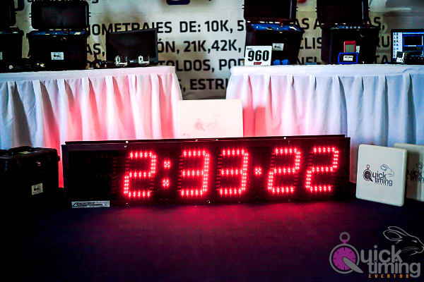 Contamos con RELOJES CRONOMETROS con pantalla LED que ilustran el tiempo de competencia en cada evento y la hora normal.